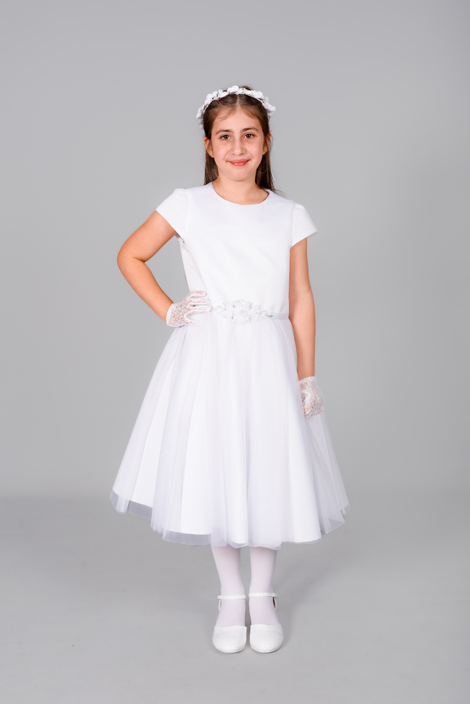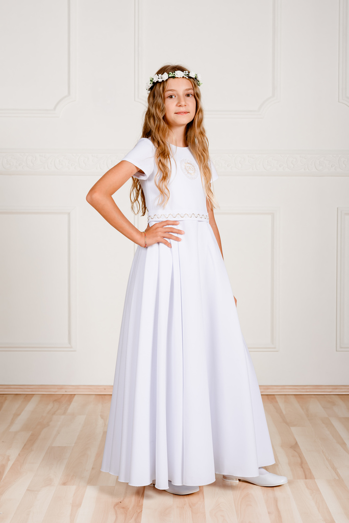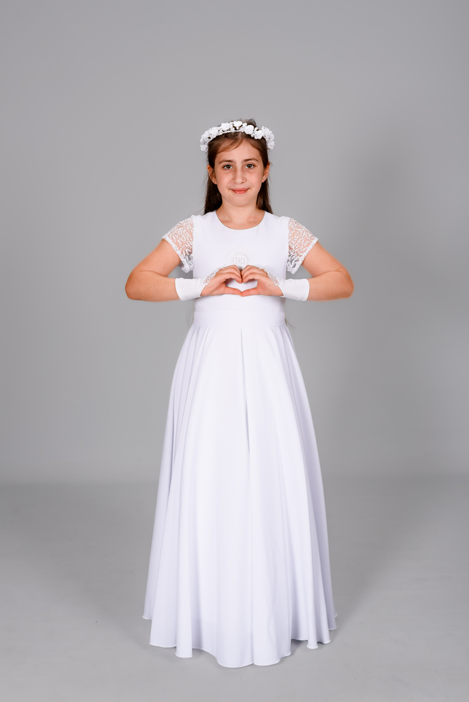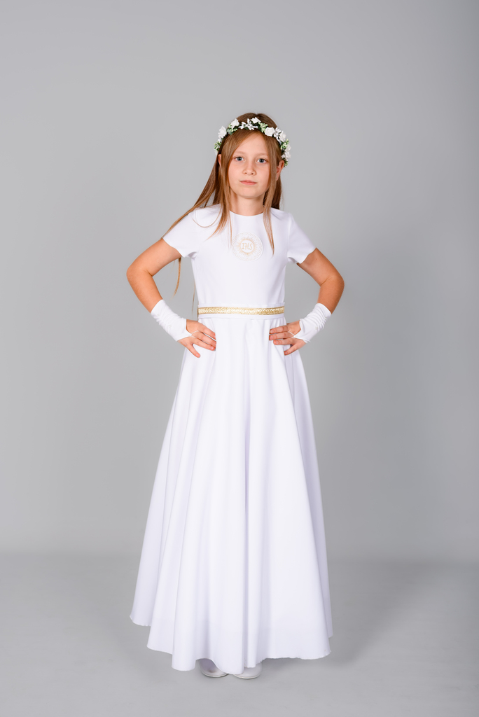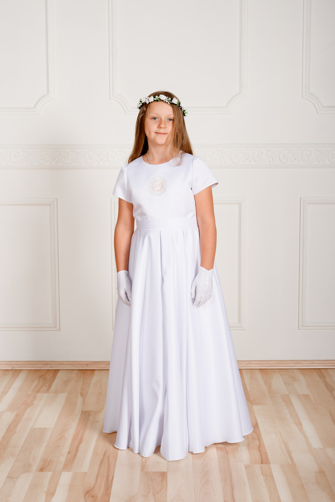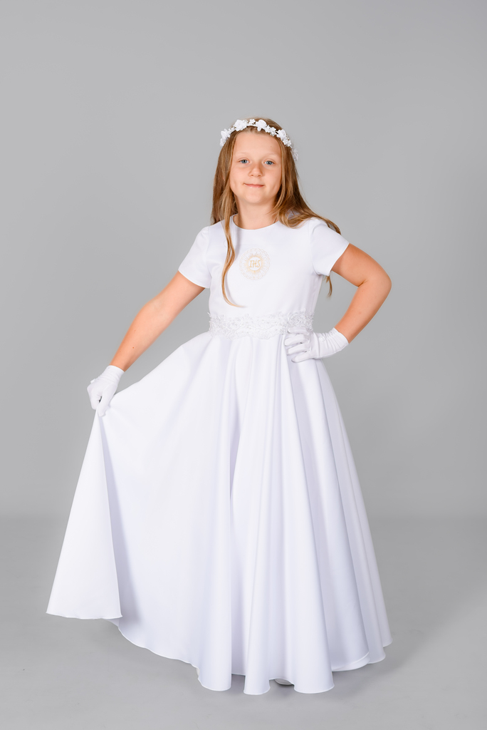 Elementem ubioru, do którego najwięcej przykłada się uwagi jest bez wątpienia sukienka. Każda dziewczynka przygotowująca się do Pierwszej Komunii Świętej myśli o swojej wymarzonej kreacji. Często przy wyborze sukienki panuje pełna swoboda i to rodzice wspólnie z dziećmi wybierają ubiór komunijny. Czasami jednak bywa tak, że panująca tradycja w naszej parafii określa to w jakim stroju dzieci powinny iść do komunii. Jeśli w naszej ofercie nie znajdziecie Państwo takiego fasonu my jako producent uszyjemy taki strój komunijny zgodnie z wytycznymi parafii.